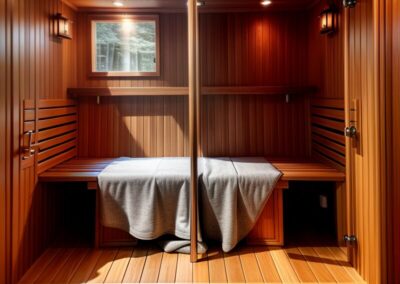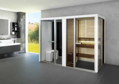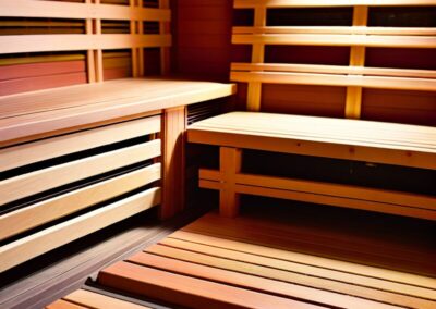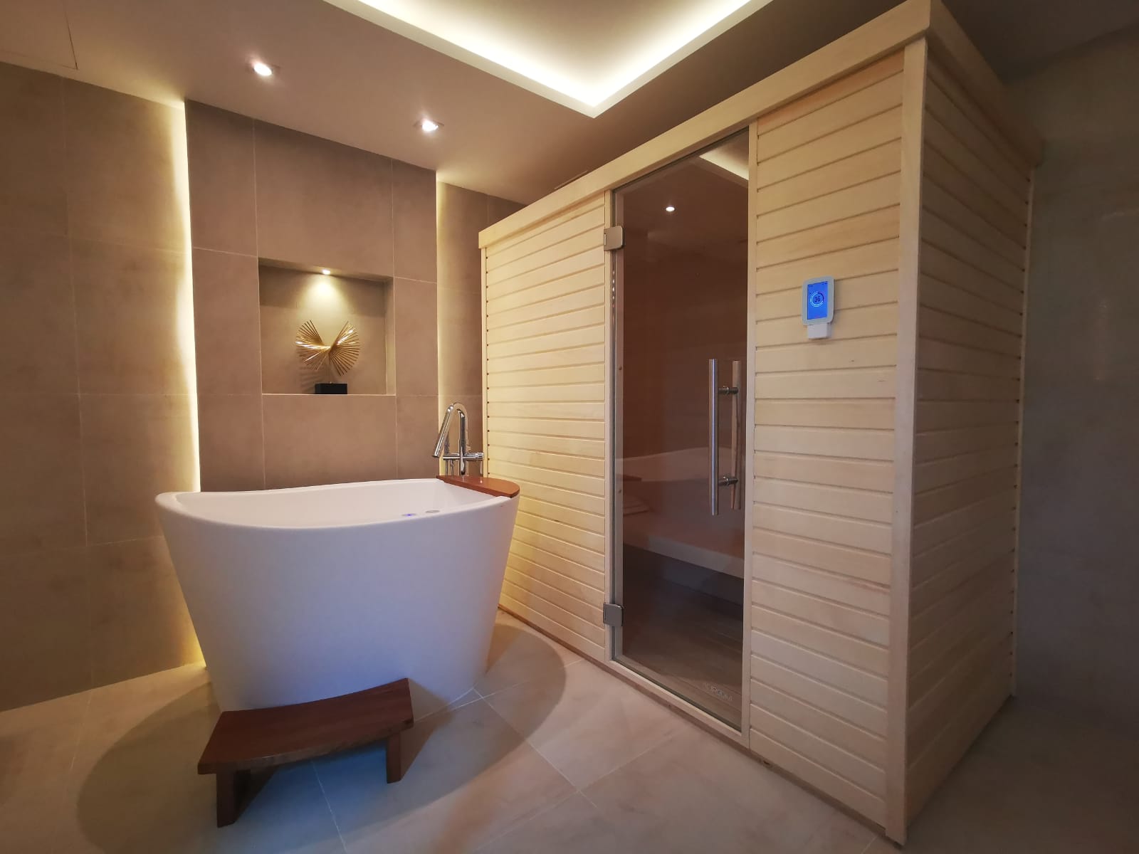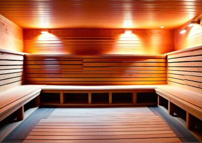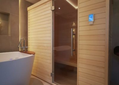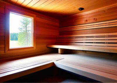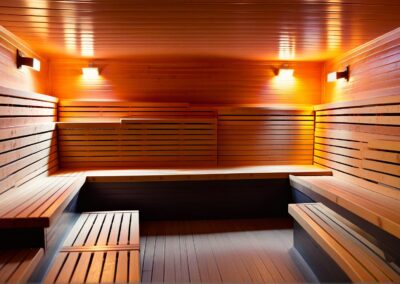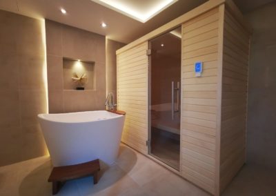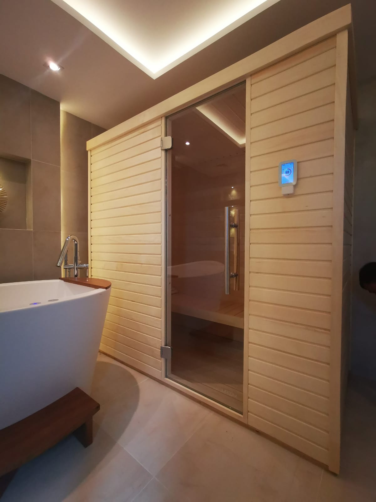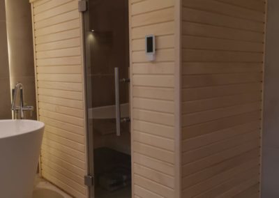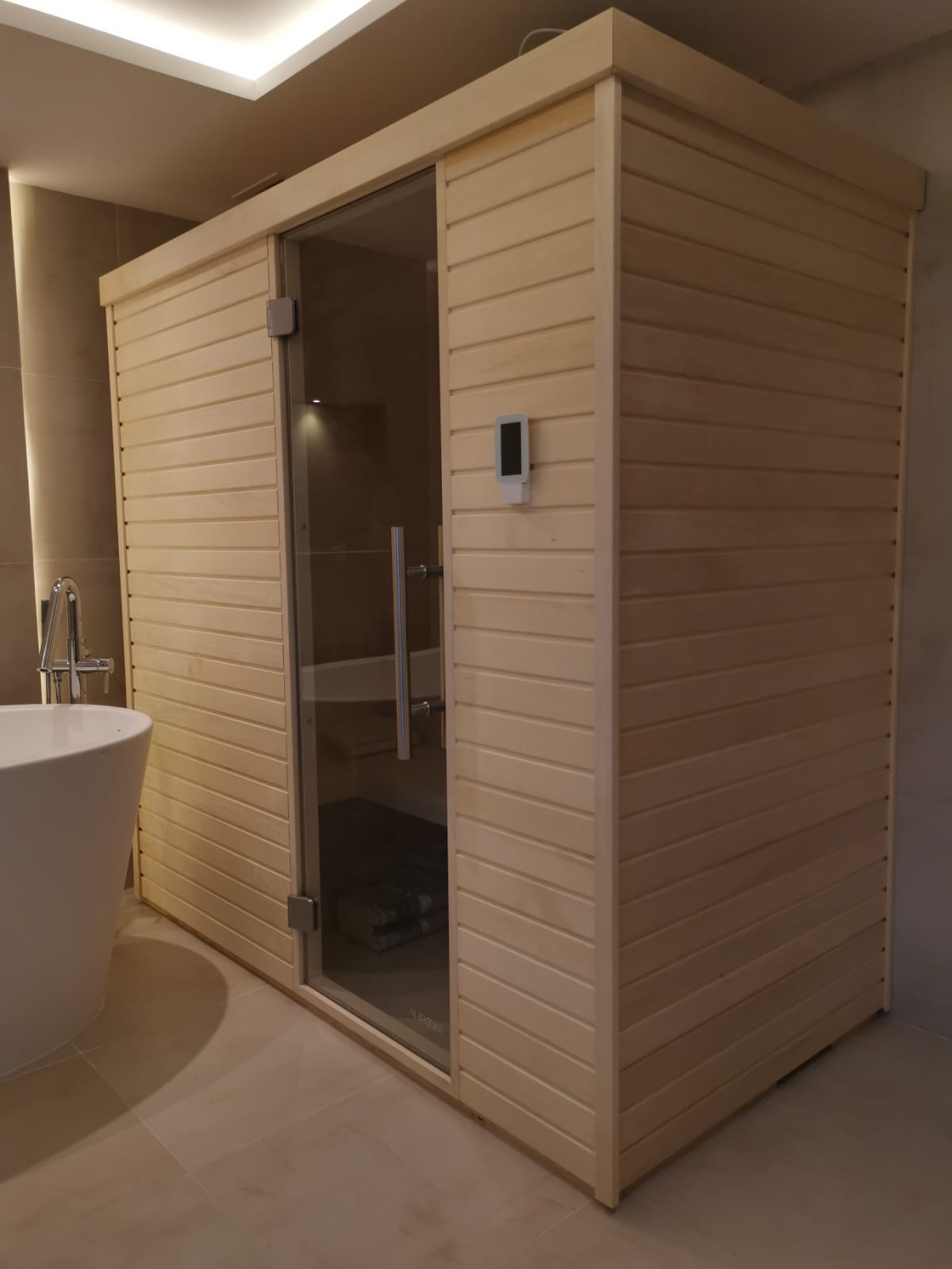 Traditional Finnish sauna for private client in Dubai with classic and modern design. Aspen wood from Nordic countries , with natural shent of wood. Helo heater from Finland.